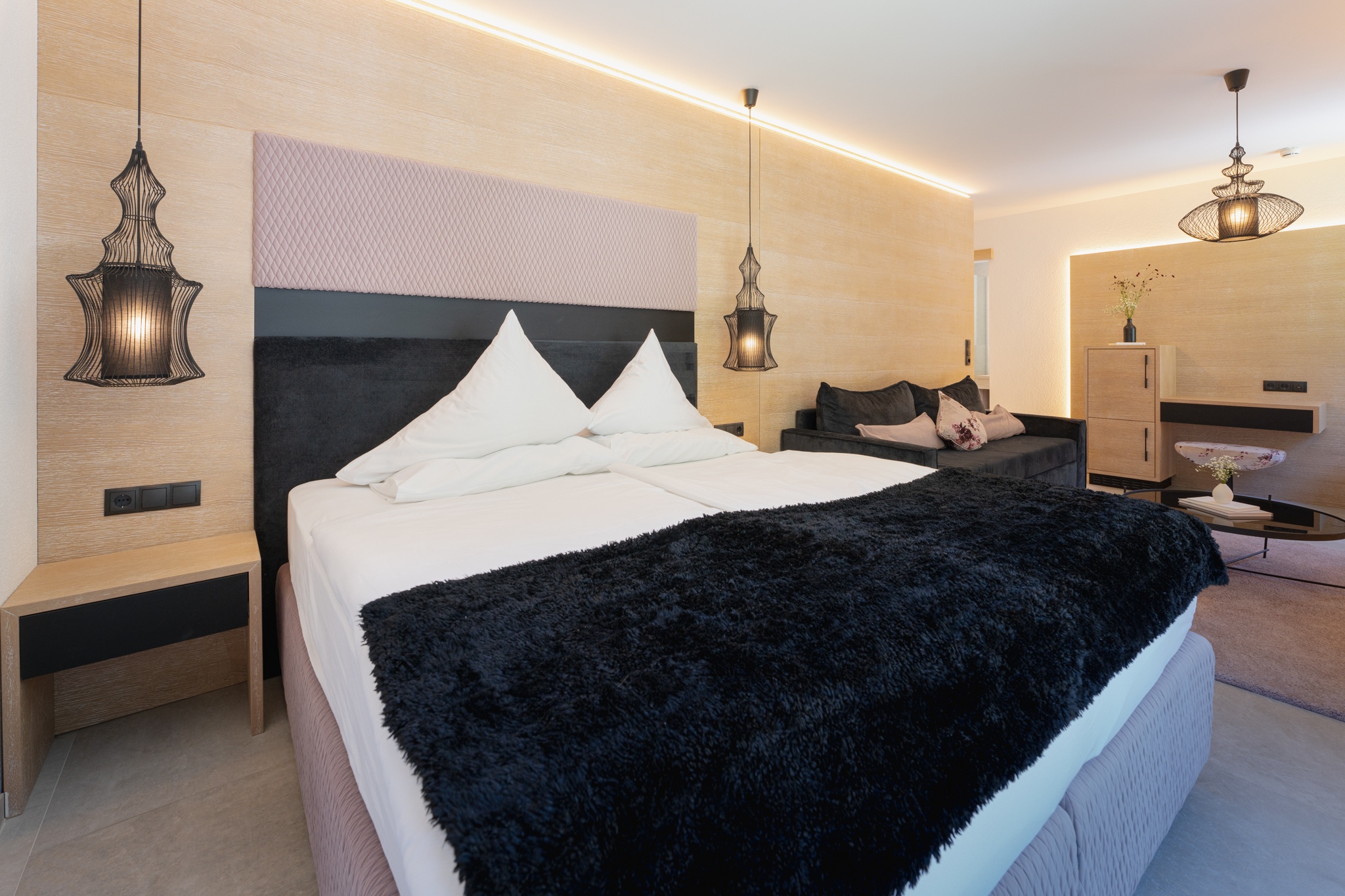 Dieses Loft mit kombiniertem Wohn-und Schlafbereich bietet jede Menge Platz zur Entfaltung. Die inspirierende Ausstattung und das alpine Flair macht dieses Zimmer zur perfekten Wahl für alle, die es gern modern mögen.